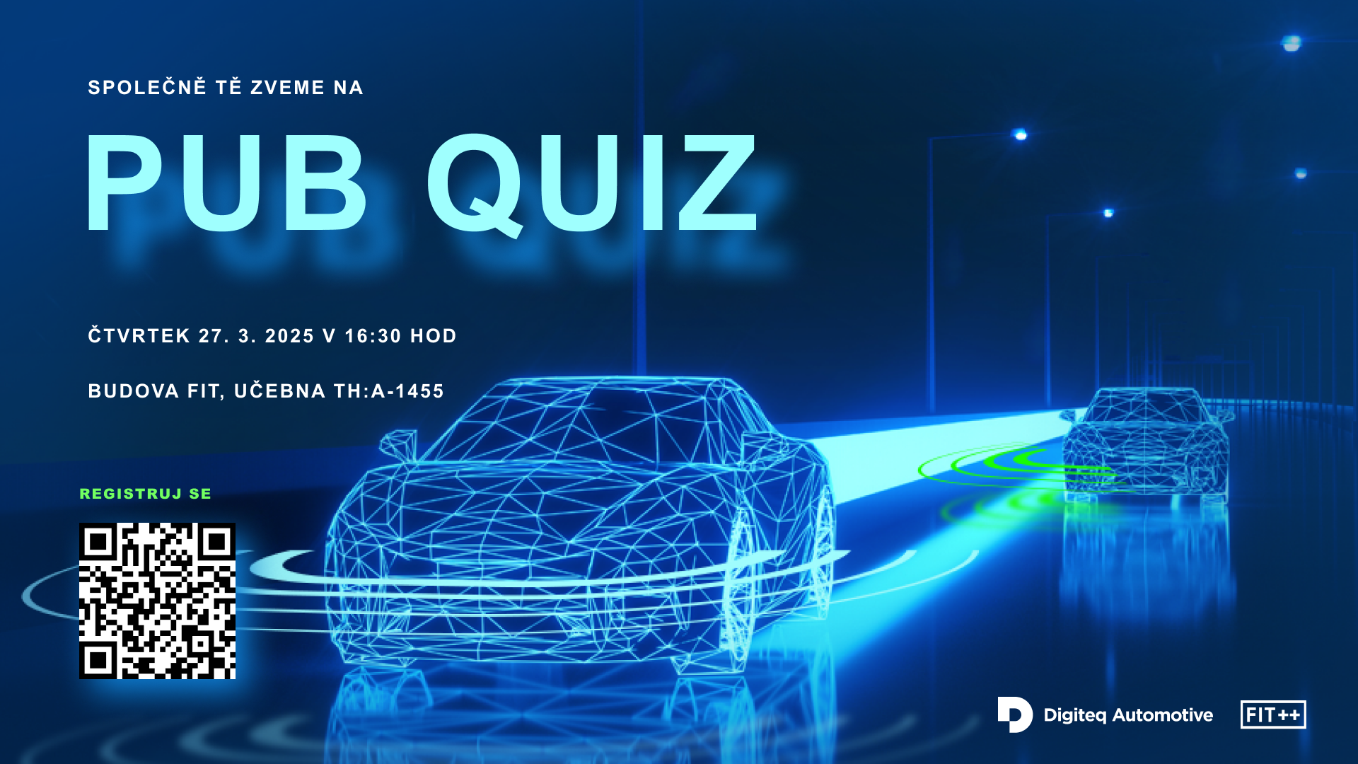 Chcete si zpříjemnit odpoledne a zároveň prověřit své znalosti v oblasti technologií a automotive? Přijďte na náš Meetup ve stylu Pub Quiz, který pořádáme ve spolupráci s Digiteq Automotive.