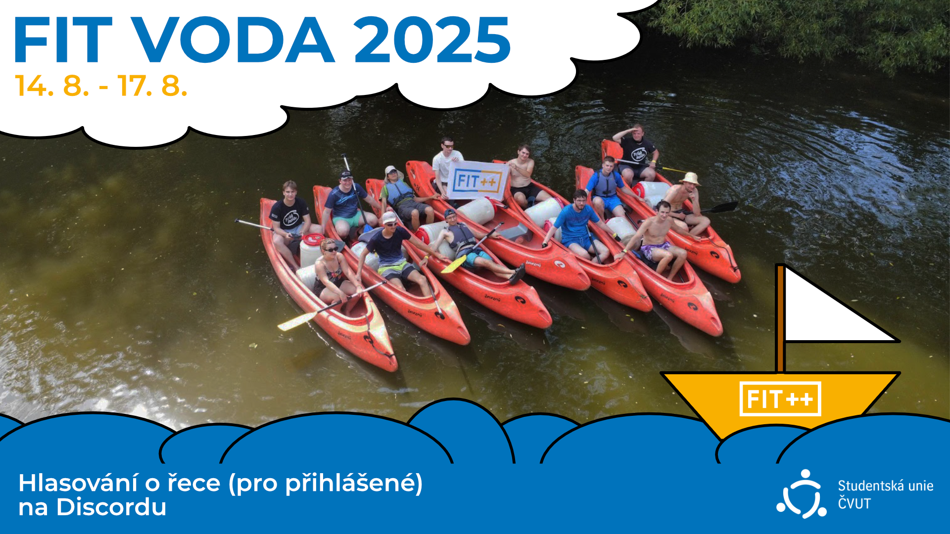 Na vědomí se dává, že letošní FIT Voda se uskuteční od čtvrtka 14. 8. do neděle 17. 8.. Letošní výběr řeky stále probíhá (mezi přihlášenými) na Discordu.